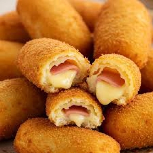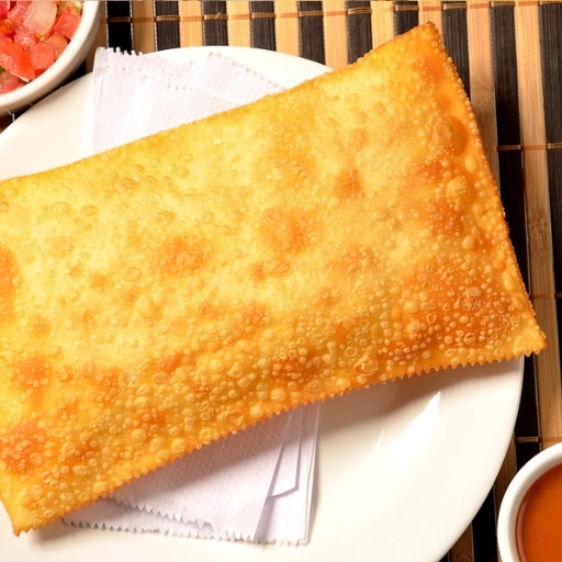 Salsicha, batata palha, purê e Katchup na massa de pastel